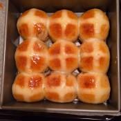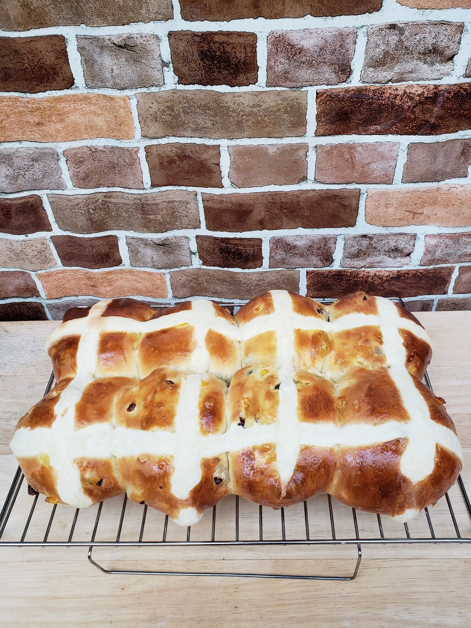 フローライト イギリス伝統のイースターのパン ホットクロスバンを焼きました ドライフルーツ入りで少しスパイシー シロップ塗ったのでツヤツヤ ホットクロスバン イースター ホットクロスバンズ